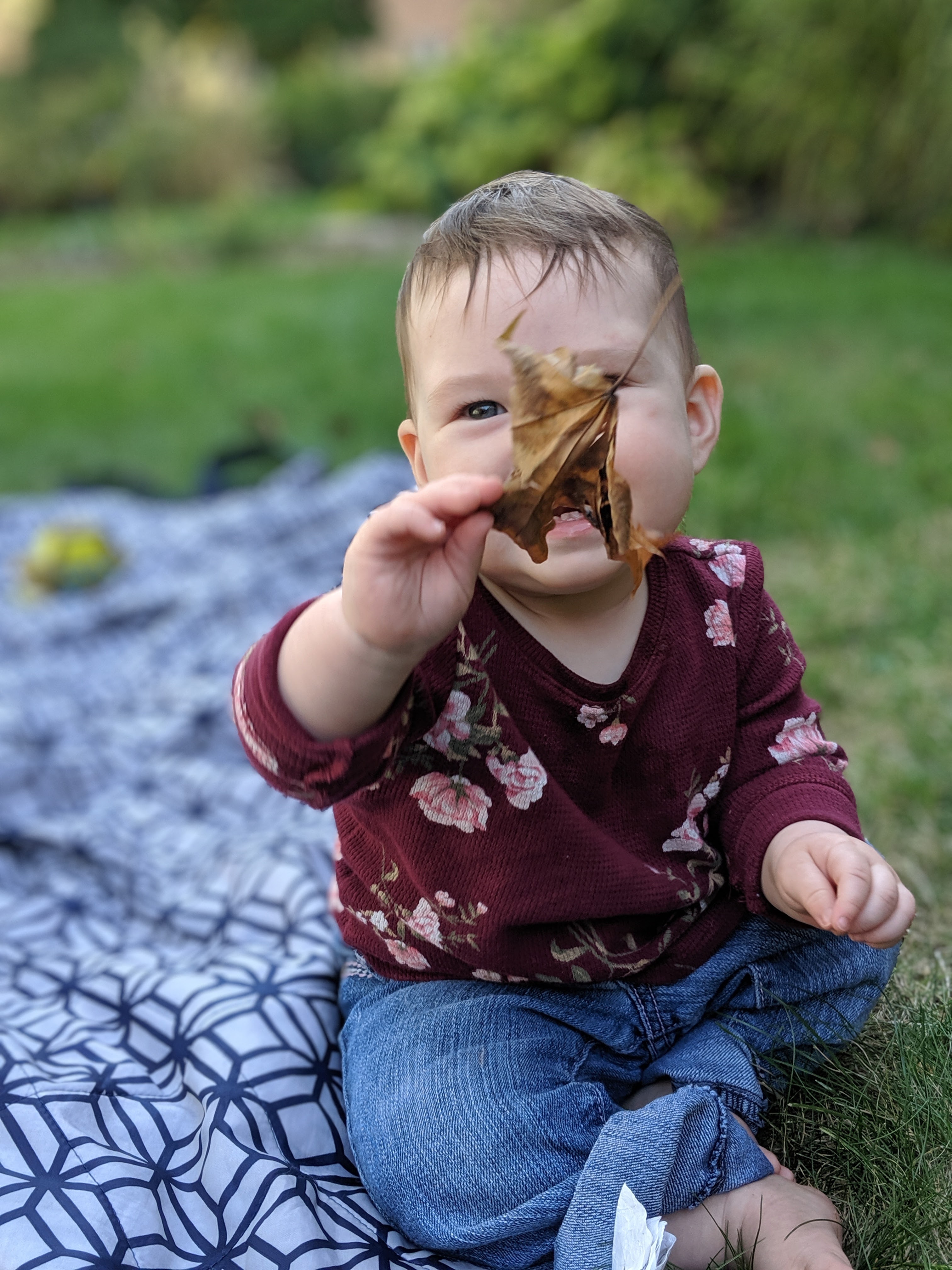 She is still learning to connect the meaning of the greeting with her physical ability to do it, so the sign gets used everywhere at the moment. In her high chair, tired of having blueberries and bell peppers? A frantic, fast, “hi hi hi hi hi hi hi GET ME OUT OF HERE, PLZ!” hand gesture. Waking up from a nap? A smile and the wave. You had the audacity to interrupt her playing for a verboten diaper change? You’ll get a betrayed look and a fast wave. The trees start swaying in the fall breeze, or a neighbor crosses the street with her tiny dog? A slow wave and a grin.