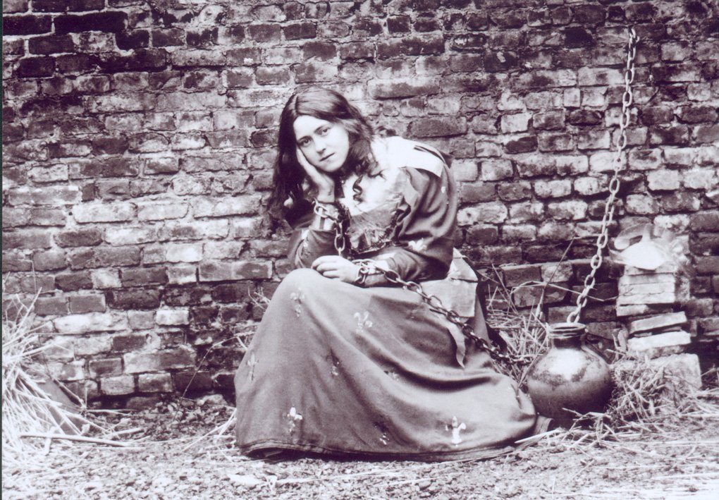 Therese, who is now a saint, acting the part of St. Joan of Arc in a play. META SAINT LEVEL
